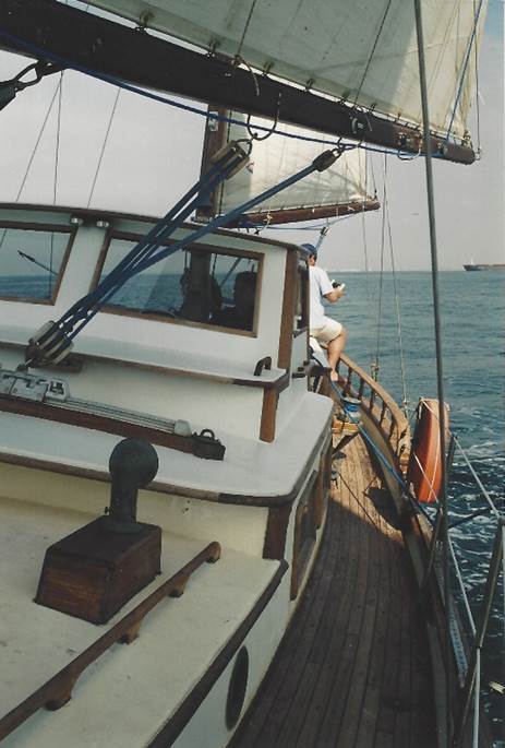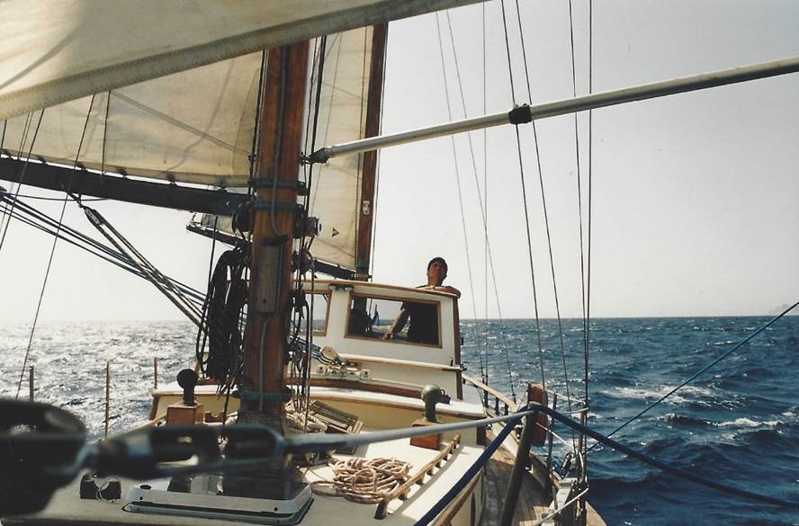 Le lendemain, le temps est calme et nous poursuivons notre route vers le cap Sicié et Porquerolles, avec la grand-voile inutilisable.