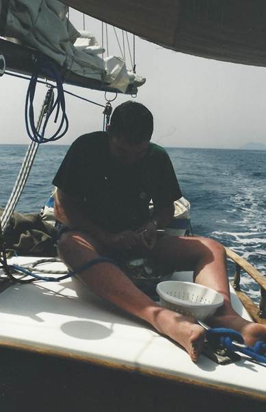 L’équipage vaque à ses occupations, pêche, épluchage…