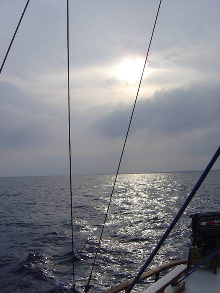 Le temps est plutôt maussade en route et le vent calme. Nous naviguons au moteur seul.