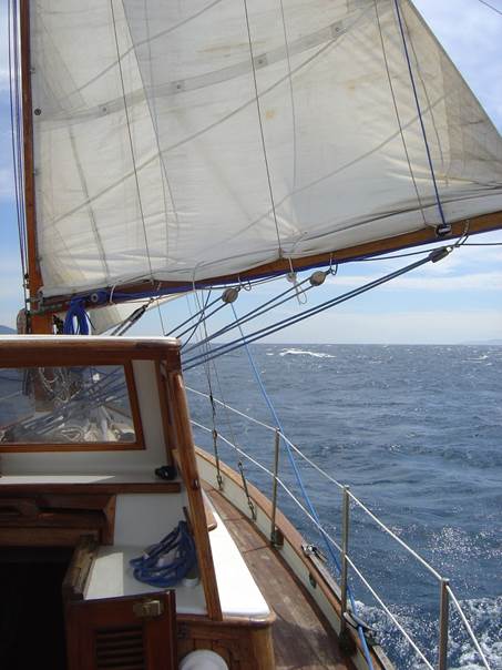 Donc nous appareillons après avoir fait le plein de Gas-Oil, et le ton est donné très vite au sortir du port : le vent est à 25 nœuds dès le passage des Mèdes.