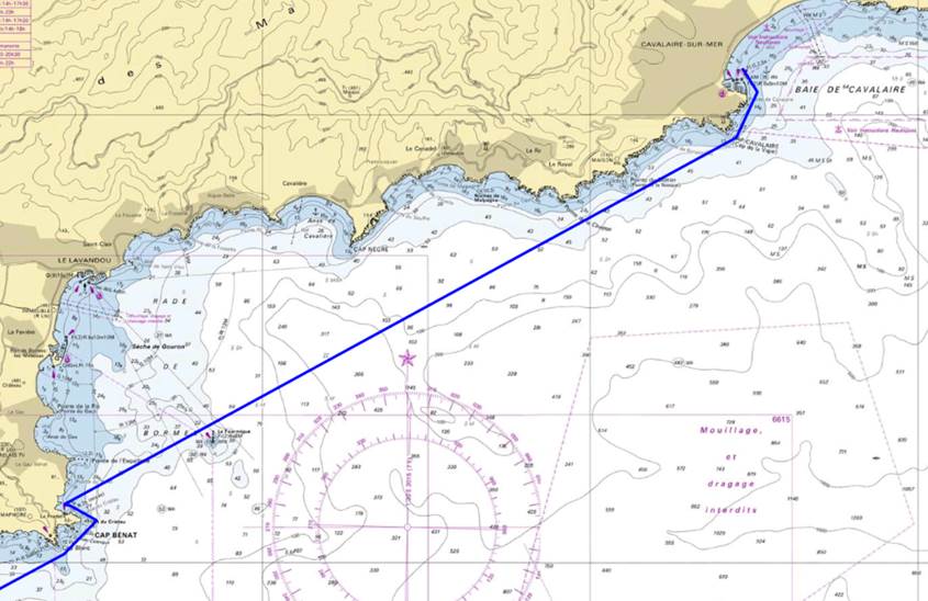 Nous appareillons à 08h00 de Cavalaire dont nous ne garderons pas un souvenir inoubliable.