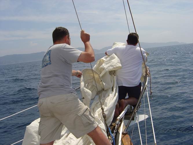 Notre programme étant d’aller vers l’est, et Aquila Maris étant excellent au portant, nous décidons d’appareiller. La skippeuse du bateau allemand qui à couple sur Tribord tente de nous en dissuader.