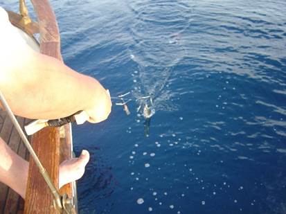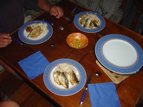 Nous mangeons ce soir le produit de notre pêche : quelques bonites..