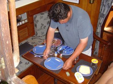De retour à bord, le temps d’un apérotif, nous passons à table où Espadon officie.