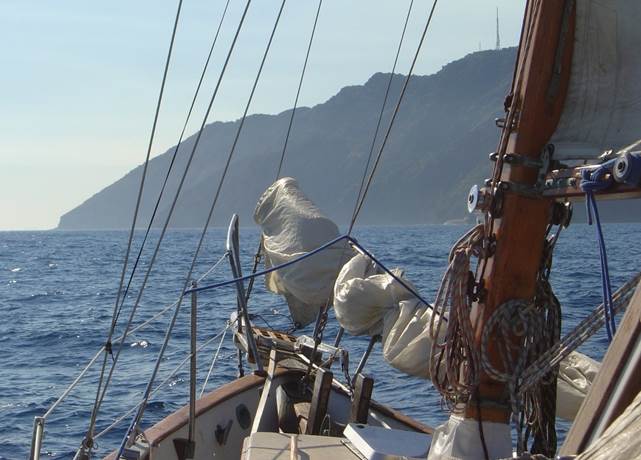A 17h00, le vent est monté à 35 nœuds, et des rafales arrivent du sommet de la montagne en secouant la baie. Nous décidons d’appareiller et de passer la nuit à Cavalaire, à deux heures de route sous le vent.