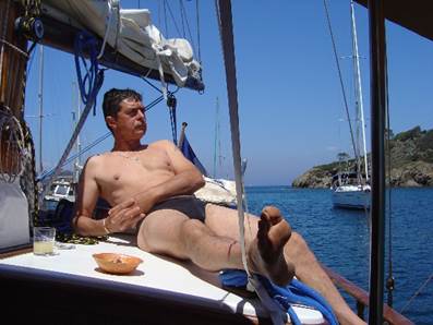 Nous filons rapidement vers le cap Bénat et nous mouillons 30 mètres de chaîne dans l’anse du Pradet, à l’abri du Mistral.