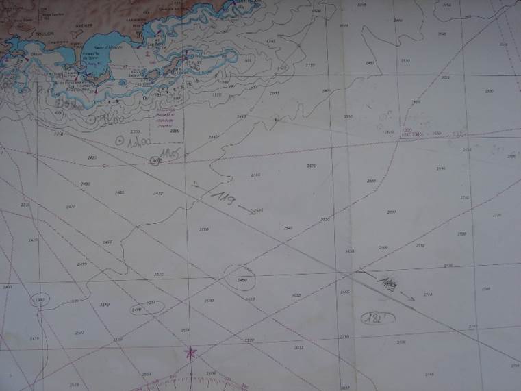 On navigue encore aux cartes papier et au point GPS, Aquila Maris n’ayant pas encore de traceur.
