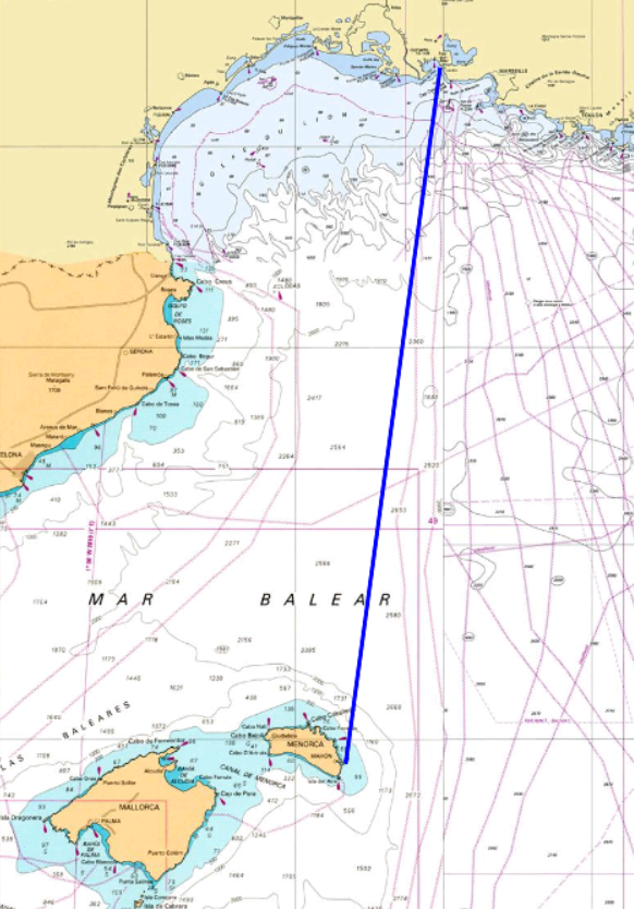 La traversée dure environ 36 heures de Martigues à Mahon, et nous appareillerons ce soir pour atterrir de jour sur Minorque.