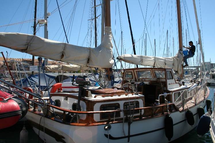 Nous tournons un moment en appelant à la VHF, et finalement, après s’être embringués dans le fond de la baie en faisant même marche arrière pour ne pas se tanquer (bloquer en marseillais), le Club Maritimo ( cloube marrrrritimo… ) nous répond et nous propose une place à quai.
