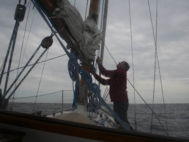 Dans ce temps maussade et variable, on changera plusieurs fois de mode : moteur seul, voile seule, voile et moteur.