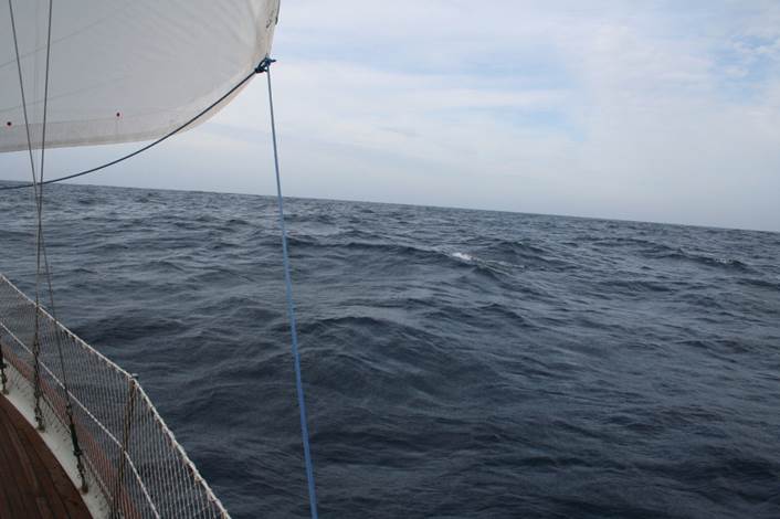 Le bateau marche à 6,5 nœuds à la voile seule.