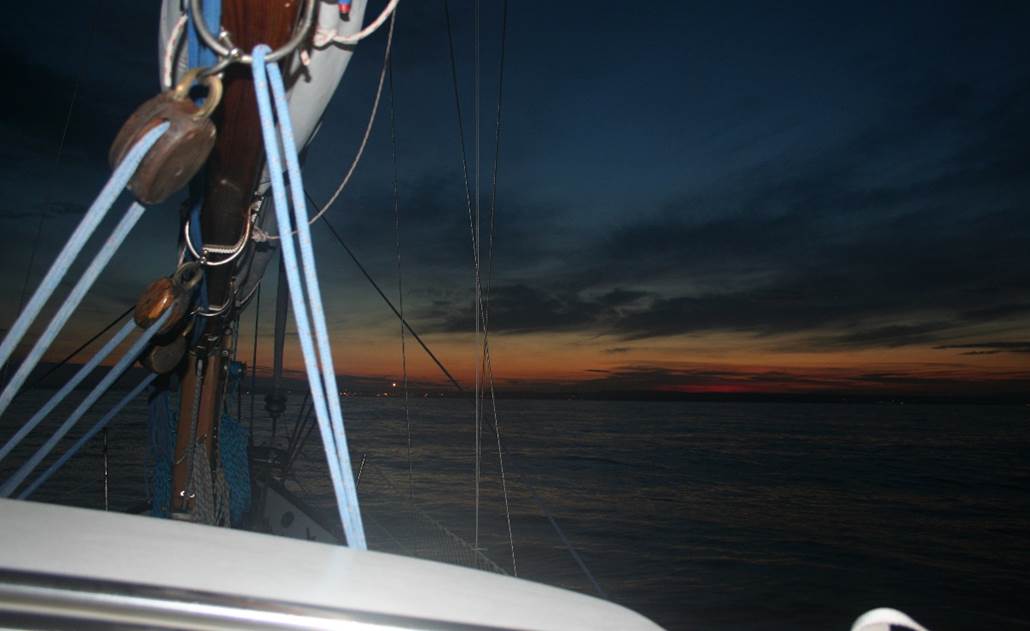 Le vent se calme au soir, et nous prenons le quart de nuit.
