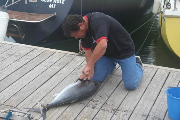 (*) – Il est très important de saigner le thon après la pêche : frais pêché à la traine, son sang est chargé de toxines extrêmement indigestes voire même toxiques même à l’estomac des plus néerlandanderthaliens d’entre nous.