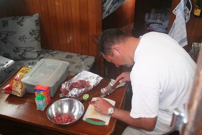 Outre le rangement du bateau, il nous faut traiter le thon, et effectuer le partage équitable selon la coutume des Boucaniers.
