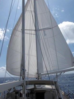 La traversée est musclée, mais Amarante assure sous génois et un peu de moteur, et roule du cul comme une cagole déboulant Canebière avec le mistral dans la jupe par ¾ arrière-tribord.