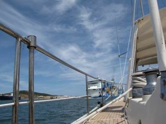 Ça nous aura au moins laissé le temps de vaquer à quai : faire de l’eau, téléphoner aux chers et chères, aspirer les miettes de la vie humaine en promiscuité, dans l’attente de l’horaire favorable.