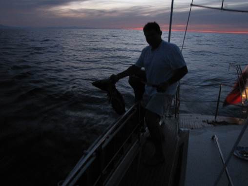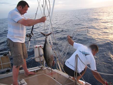 Mais vite, la rotation des quarts impose son rythme de veille attentive, selon les principes stricts la convention Solas et de son corolaire français, l’Arrêté de novembre qui-va-bien, tandis que la canne de traine est mise à l’eau.