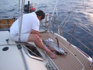 Mais vite, la rotation des quarts impose son rythme de veille attentive, selon les principes stricts la convention Solas et de son corolaire français, l’Arrêté de novembre qui-va-bien, tandis que la canne de traine est mise à l’eau.