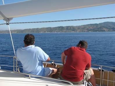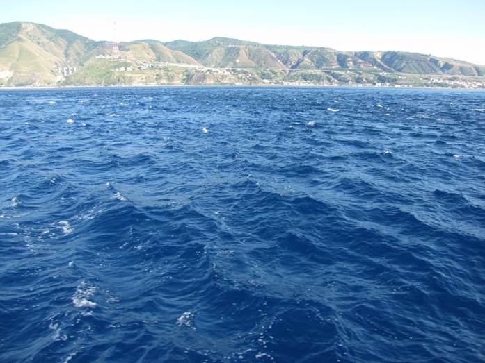 Plus tard, la côte nous dévente, et nous débouquons le détroit, à la Punta di Pellaro.