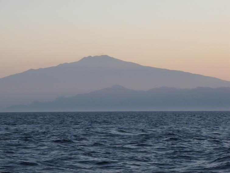 Nous mettons en route vers le Capo Peloro, à l’entrée du détroit de Messine, guidés par le majestueux Etna, qui nous surplombera de sa masse pendant tout le passage.