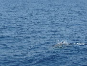On a même vu des dauphins mais bon, y sont pas vraiment sur la photo. Ça saute, ça plonge ces bêtes-là. T’sais jamais ou faut viser.