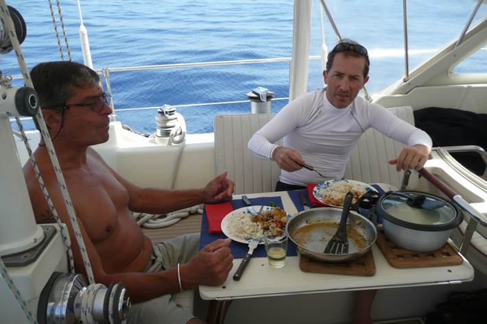 Bref de fil (à voile) en aiguille (à tricoter car on a que ça à foutre), on s’habitue à la dure vie du bord et à ces corvées.
