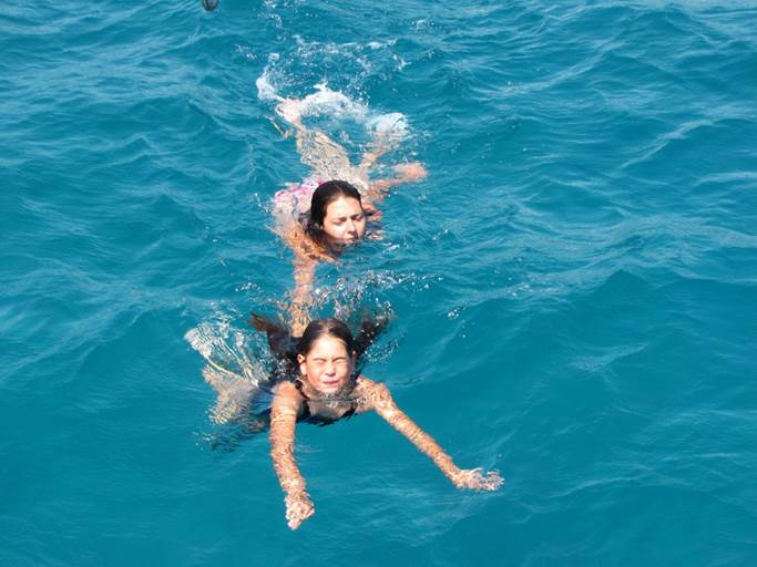 Et devinez quoi ? A peine appareillé, ma planche de nage s’envole et après maintes et maintes manœuvres pour la récupérer (sans succès) il faudra qu’un de nous saute à l’eau. (Désolé pour les photos c’était trop rapide.)
