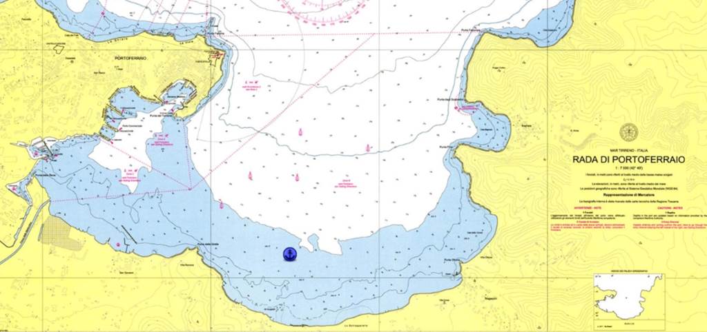 Arrivés vers 2h du matin à Portoferraio, notre cher Cap’tain Trudd décide de mettre Amarante au mouillage dans une baie magnifique et très calme, qui évoque, par certains côtés, certains endroits des îles des Caraïbes, de nuit, avec le ti-punch qui va.