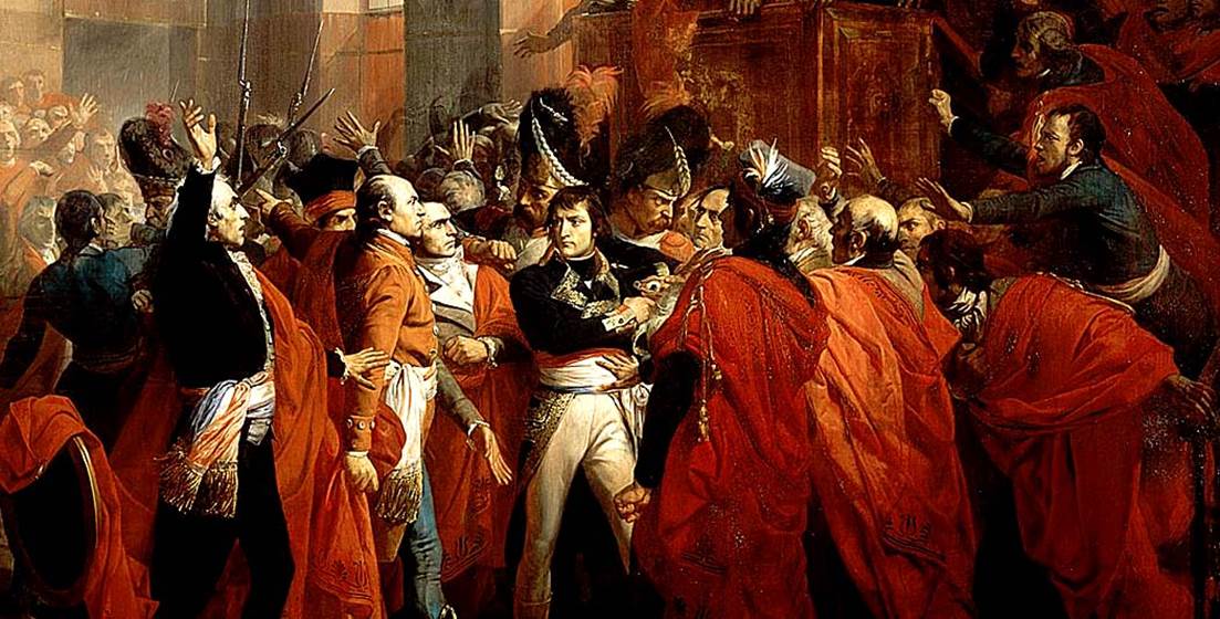 Le 9 novembre 1799, ou 18 Brumaire – An VIII, Bonaparte réussit son coup d’état et deviendra Premier Consul au milieu du bazar politique des assemblées et des courants politico-financiers, déjà.