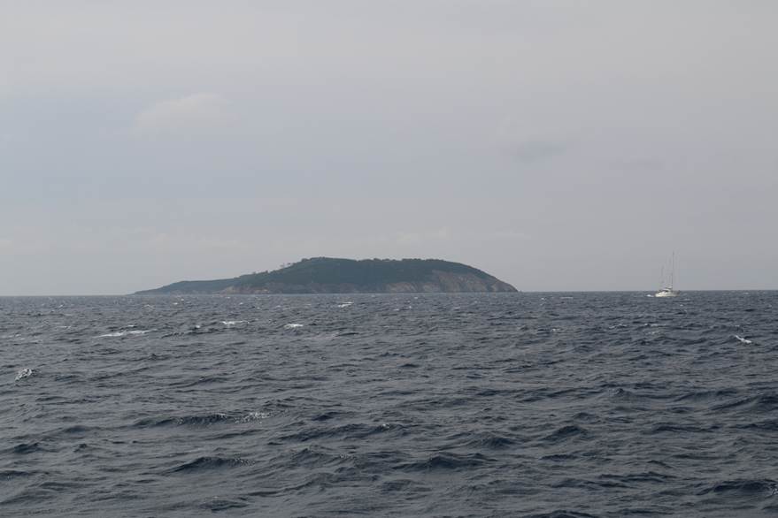 Nous devions initialement mouiller sur l’ile de Port Cros mais finalement, ce sera l’ile de Porquerolles. En effet, l’orientation de la baie dans laquelle il nous aurait été possible de nous amarrer sur un coffre à Port Cros est orientée en plein dans le vent….