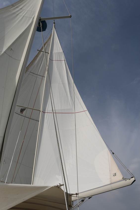 Les conditions de navigation restent très agréables puisque nous sommes alors en vent arrière ce qui donne une certaine stabilité au bateau, même toutes voiles dehors.