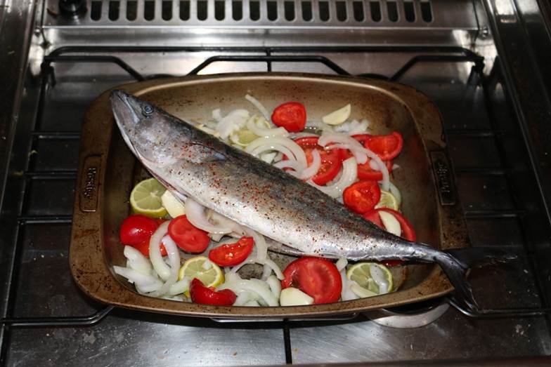 Le gros maquereau à qui j’avais confectionné la veille une belle boutonnière maison est sorti prestement du frigo dans lequel il reposait.