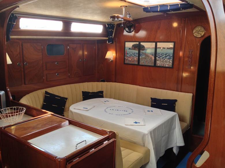 Là, tu comprends, on sort un bout de grand-voile, genre string minimaliste, le moteur embrayé au ralenti, et on rase la côte au nord pour se donner du champ sous le vent en cas de problème. Amarante s’incline, et trace sa route à huit nœuds par vent de travers.