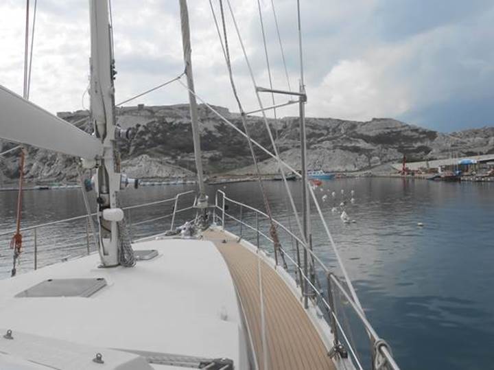 Oh, très petite : nous sommes avec Capo Sud, au port du Frioul, du côté de l’île Ratonneau !