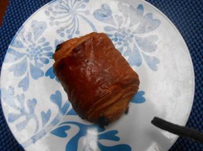 Pour se consoler de pas voir le cap’tain du port, un bon p’tit déj’ qui donne des forces : composé de croissants, de pains au choc’… et comme faute de grive on mange des merles ; faute de jus de fruits, on boit du jus de citron jaune…