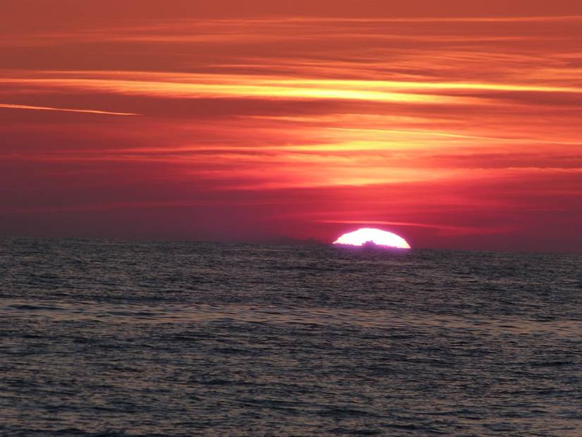 Et voilà, après un instant contemplatif face à notre premier coucher de soleil en mer, nous attaquons notre première nuit qui sera rythmée par la succession des quarts.