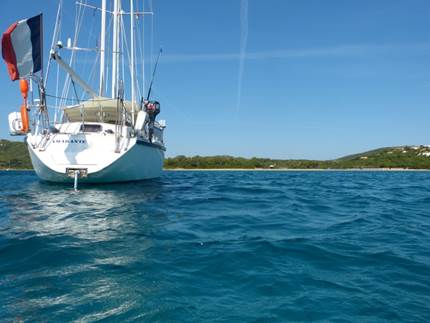 Après moult réunions et échanges des principaux de l’équipage sur la suite du programme et le planning navigation/ escales des jours à venir, nous décidons d’un « communnaccord » (néologisme que je viens d’inventer car il sera le maître mot de cette aventure) de retourner au mouillage sous le vent d’Isola Caprera où nous étions hier en se trouvant une nouvelle « cala » à l’abri de tous les vents dominants.
