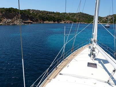 Après moult réunions et échanges des principaux de l’équipage sur la suite du programme et le planning navigation/ escales des jours à venir, nous décidons d’un « communnaccord » (néologisme que je viens d’inventer car il sera le maître mot de cette aventure) de retourner au mouillage sous le vent d’Isola Caprera où nous étions hier en se trouvant une nouvelle « cala » à l’abri de tous les vents dominants.