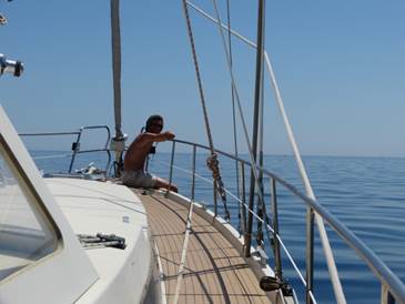 Cette traversée est occupée de diverses façons par l’équipage : « c’est le fish » fabrique un montage dont lui seul a le secret pour caler sa GoPro en altitude (Time laps pour la manœuvre d’arrivée à Palerme).