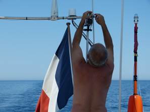 Cette traversée est occupée de diverses façons par l’équipage : « c’est le fish » fabrique un montage dont lui seul a le secret pour caler sa GoPro en altitude (Time laps pour la manœuvre d’arrivée à Palerme).