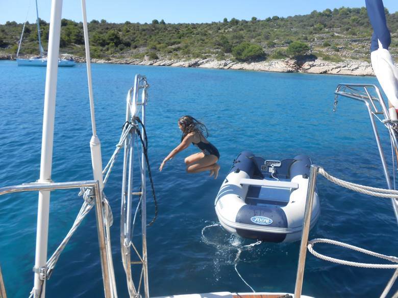 Nous appareillons de Split, le 09 juillet en fin de matinée, accompagnés du « doux » bruit du propulseur d’étrave en état de fonctionnement. Après le passage obligé au poste à gasoil, nous voilà en route… enfin en mer, il faut que je mette mes repères de terrienne (très terrienne) entre parenthèses !