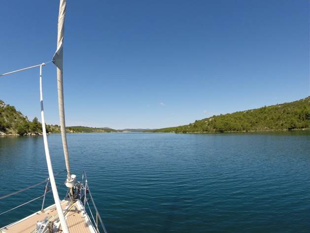 En trois heures, nous atteignons le fort Sveti Nikola, à l’entrée du canal Sveti Ante (Saint Antoine) qui mène à la ville de Sibrenik, et au lac formé par les rivières Krka et Guduća.