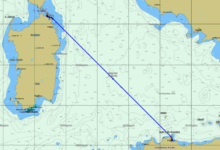 La traversée jusqu’aux Iles Maddalena est tout sauf confortable. Le vent est tombé, mais une méchante houle de Nord-Ouest va nous accompagner jusqu’au bout.