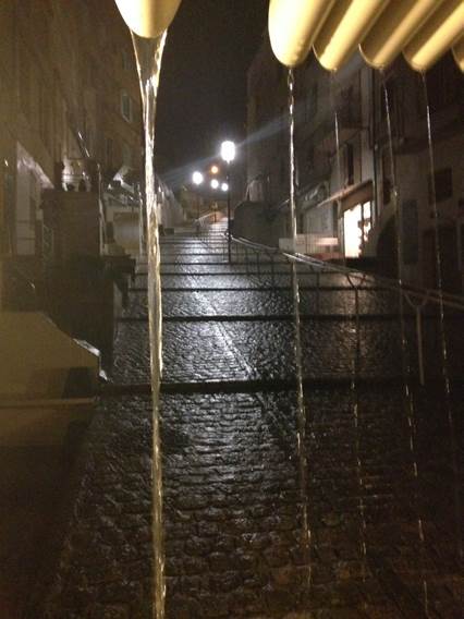 Les fêtards italiens de la coque de location adjacente ont eu le sifflet coupé par la pluie diluvienne qui s’est abattue sur la cité en cours de soirée.