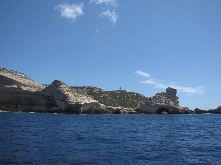 Avant d’embouquer (1) la calanque de Bonifacio.
