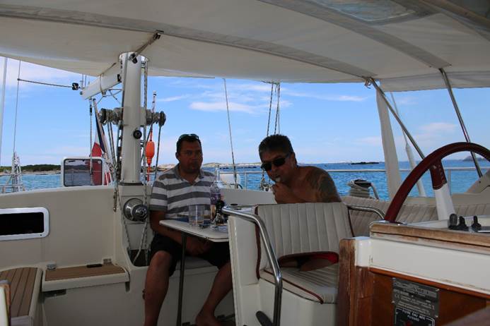 La mer a été dure cette nuit, surtout quand le vent est tombé. D’où l’abandon de Cargèse comme escale intermédiaire.