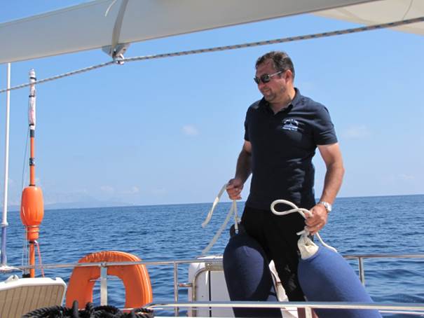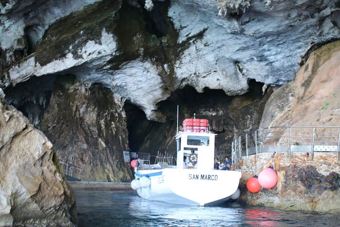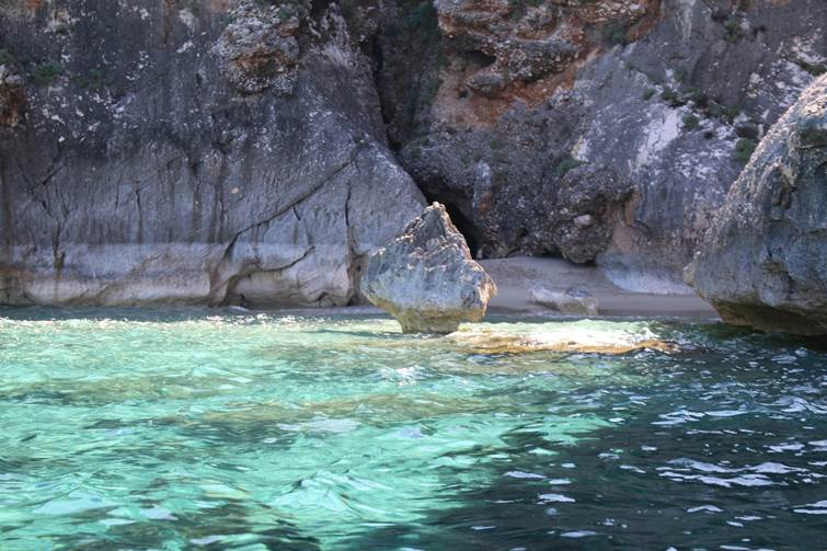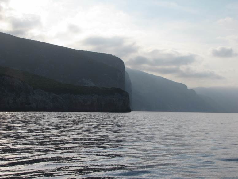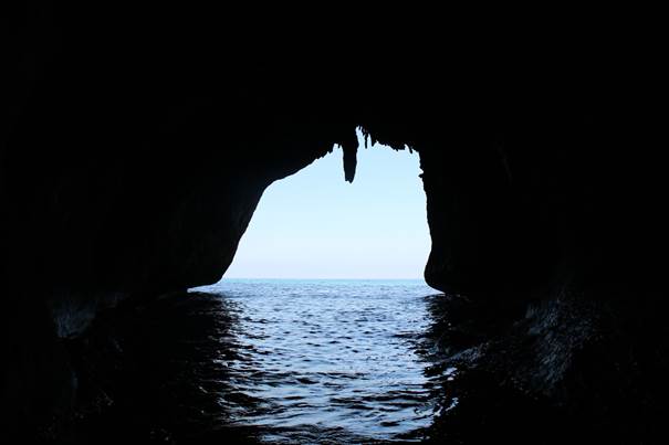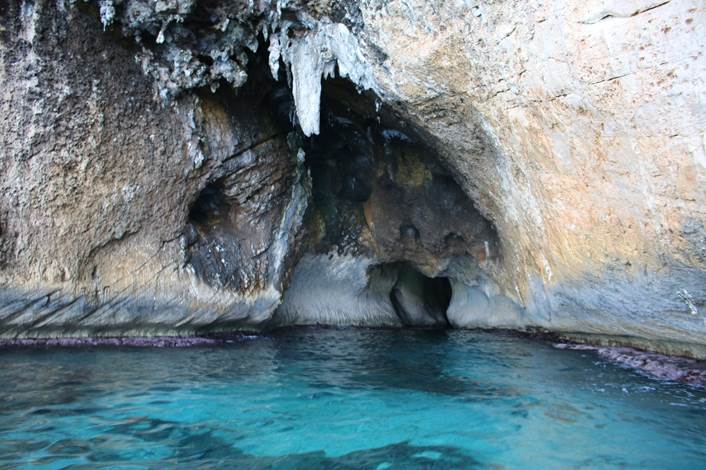 A 15h22, nous ancrons Amarante, docile, devant l’entrée des grottes del bue Marino, le phoque moine (*).