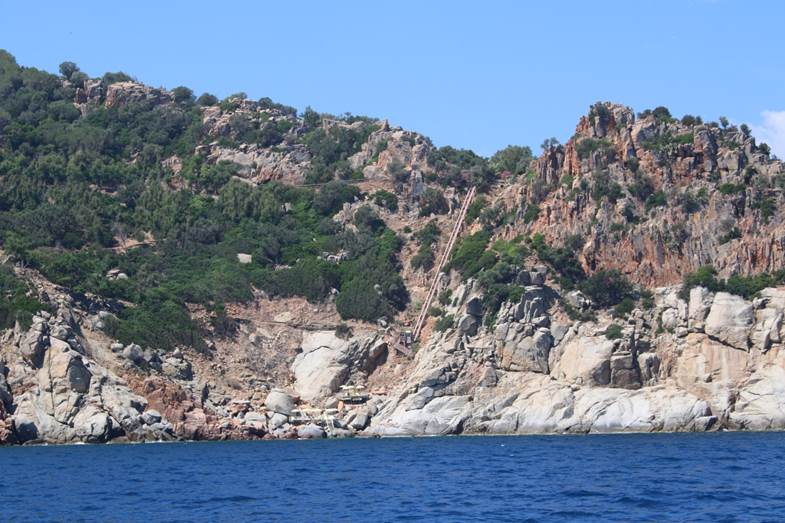 Puis nous passons devant le modèle économique local : je monte mon funiculaire personnel et mon restaurant en bas avec plage privée et parasols… La classe. « Je connais tous les chemins de mon pays »…