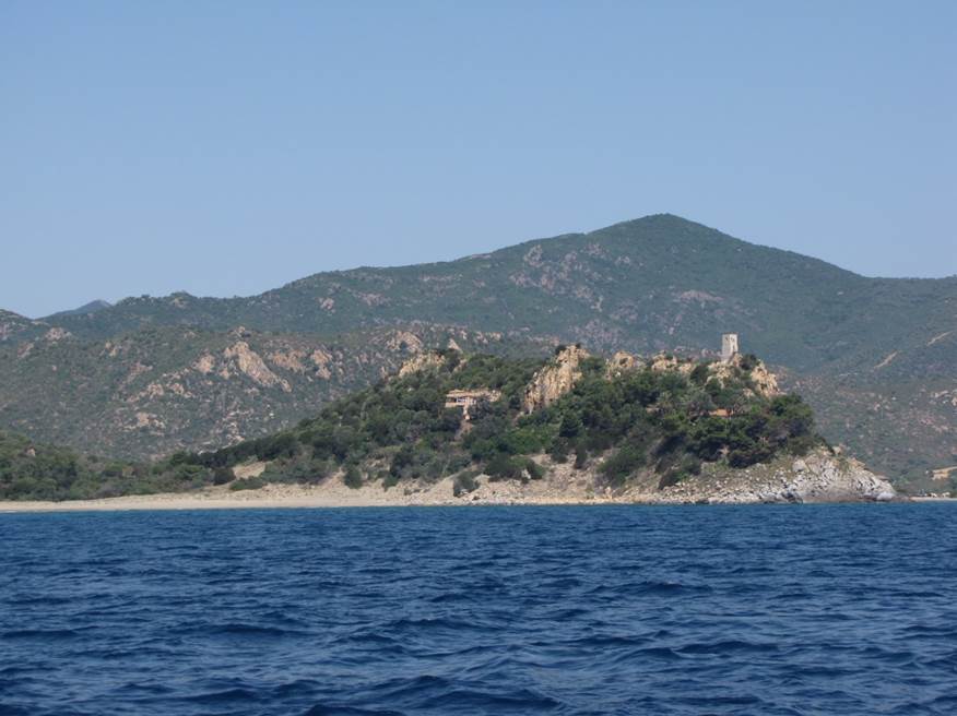 En route vers le Capo Ferrato, nous croisons au large de moulte tours et habitations enfouies dans la nature.