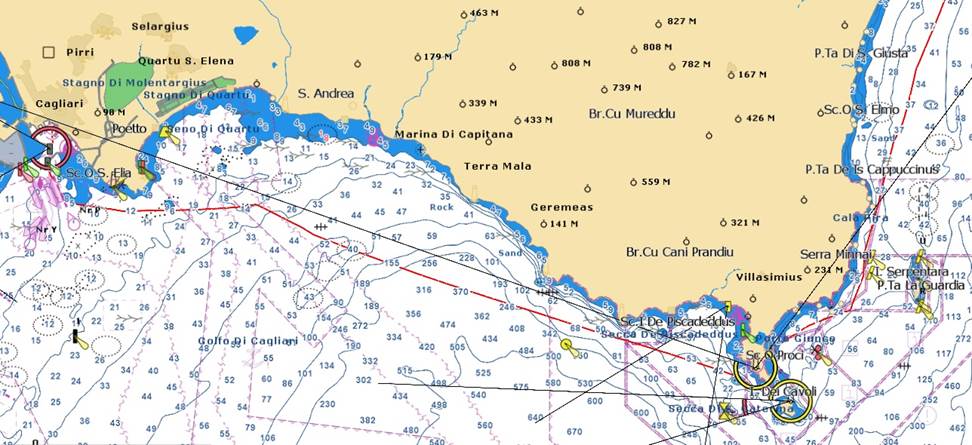 Le phare borde l’entrée de la baie de Cagliari au nord-est.
